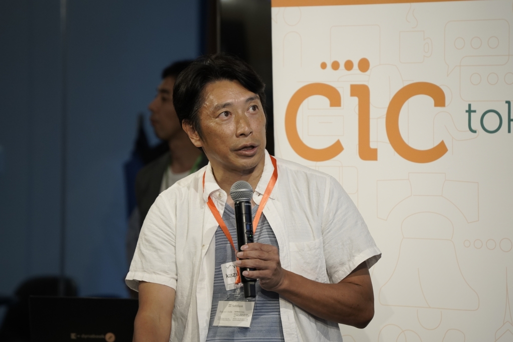 今回も、虎ノ門ヒルズ ビジネスタワーCIC内のVenture Café Tokyoの2会場にて同時進行で行われ、メインステージではTFI代表理事の沢俊和が開会の挨拶と共に、社団の取り組みとプログラムの概要を説明した。