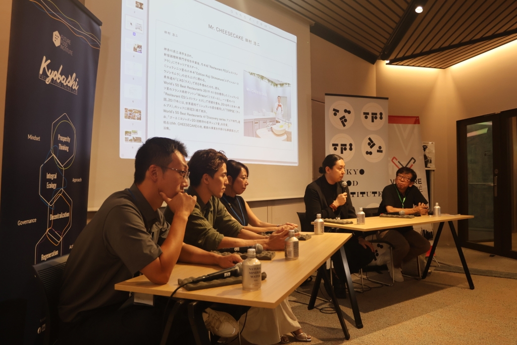 料理を文化と考える澤田氏は、キッチン以外でもその文化を生かして欲しいという思いを持つ。キッチンを飛び出し、現在、オンラインを中心にチーズケーキを販売するMr. CHEESECAKEの田村浩二氏、銀行員からフランス料理の世界に入り、現在はワインのさまざまな提案や普及を行っているマリアージュの蜂須賀紀子氏、奈良県の宇陀市でレストラン・INA labをオープンした中村侑矢氏・李在郎氏は澤田氏の考えに共感。それぞれの立場から、長時間労働などの飲食業が抱える課題や、これからの日本のレストランのあり方などを語った。