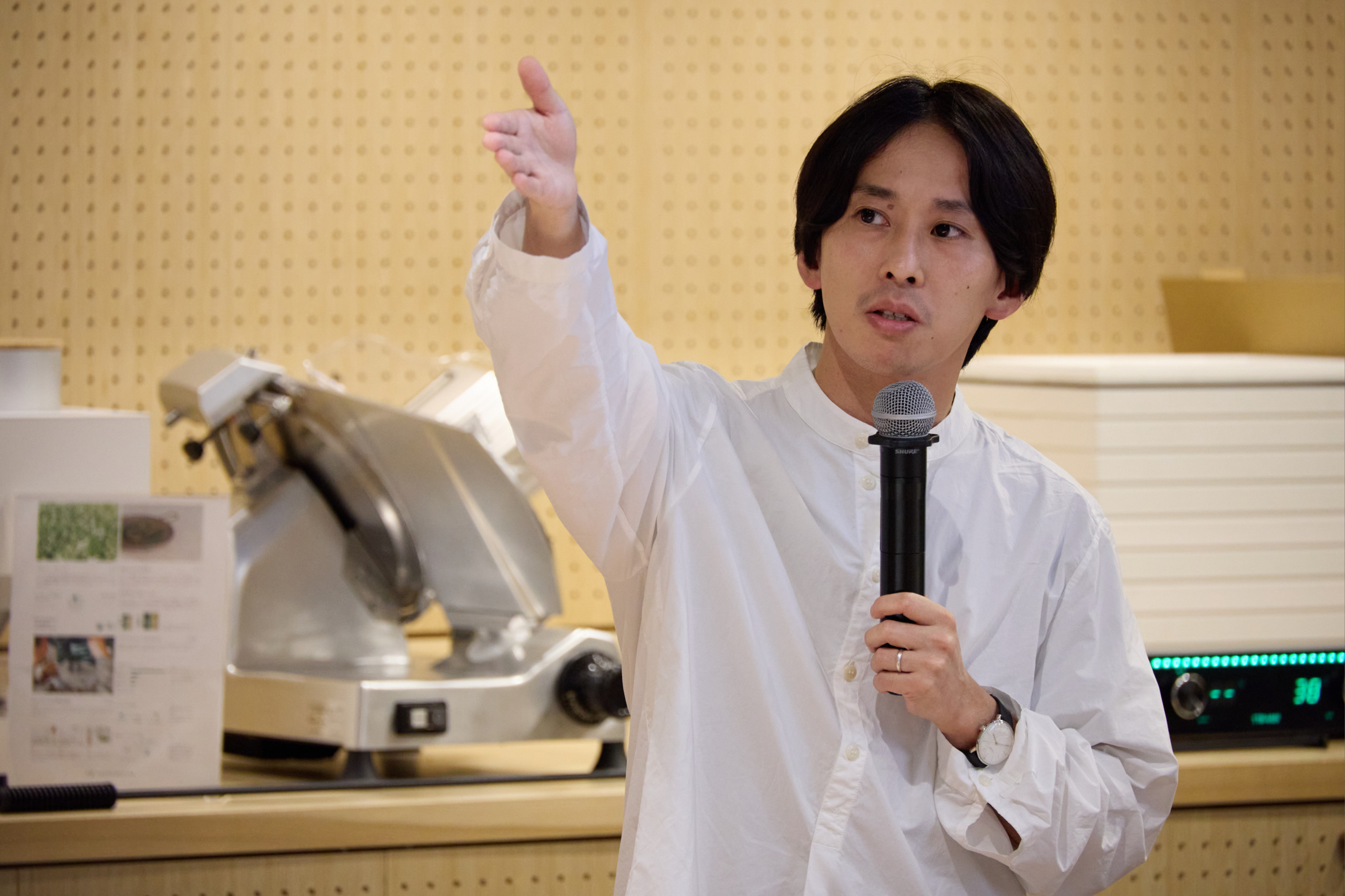 この「木庭」が持つポテンシャルを、建築やデザインとは異なる視点からリバネスCHOの長谷川和宏氏が説明する。リバネスは「科学技術の発展と地球貢献を実現する」をビジョンに掲げ、研究者の知見や技術を社会実装につなげる「知識製造業」を営む研究者集団だ。