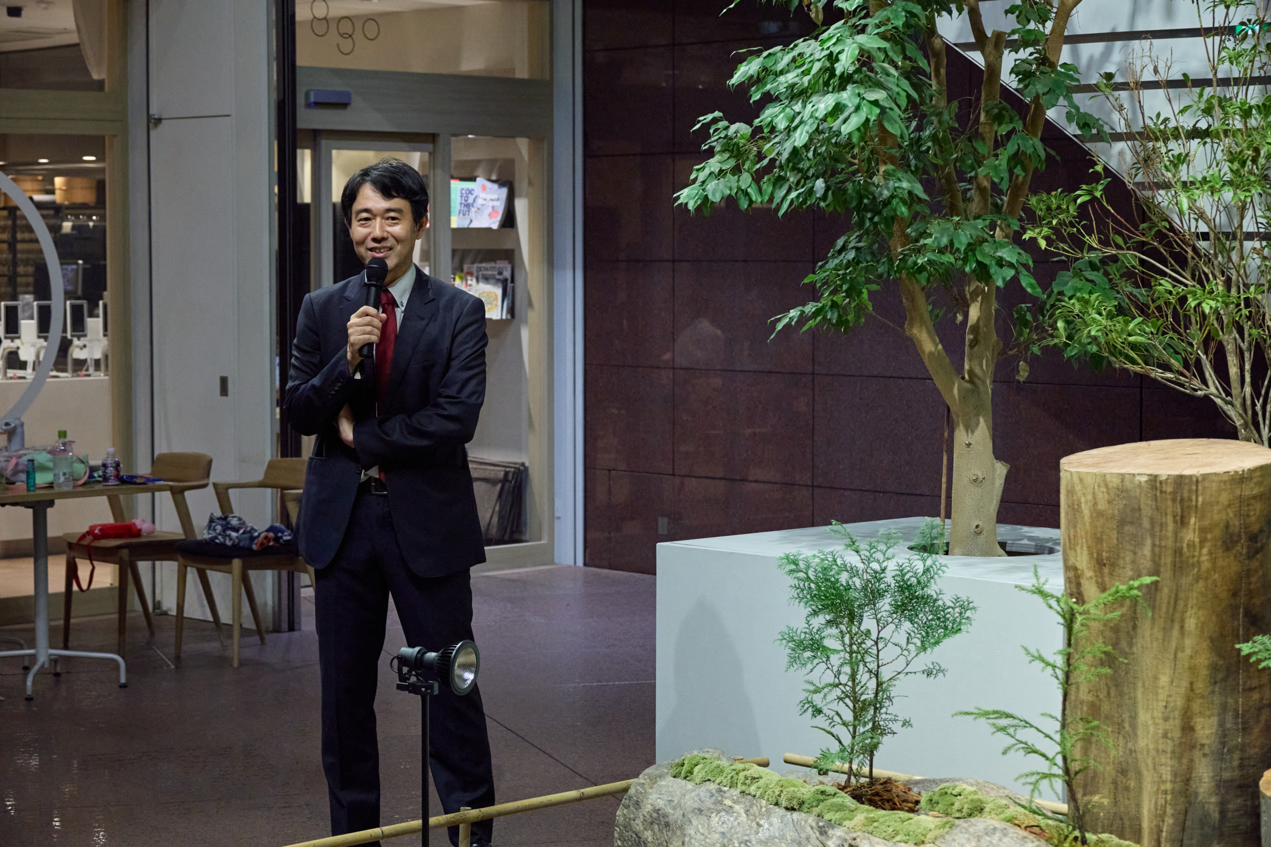 「理念形成やルールづくりも大事ですが、同時にこの八重洲、日本橋、京橋(YNK)エリアで確かな変化、一つの形を作っていくことが重要です。リバネスさんやスタートアップの方々と一緒に、新しい価値をこのエリアに実験的に社会実装してみることで社会の変革を促していく。その第一弾となるのが、今回の『木庭』なのです 」(沢)