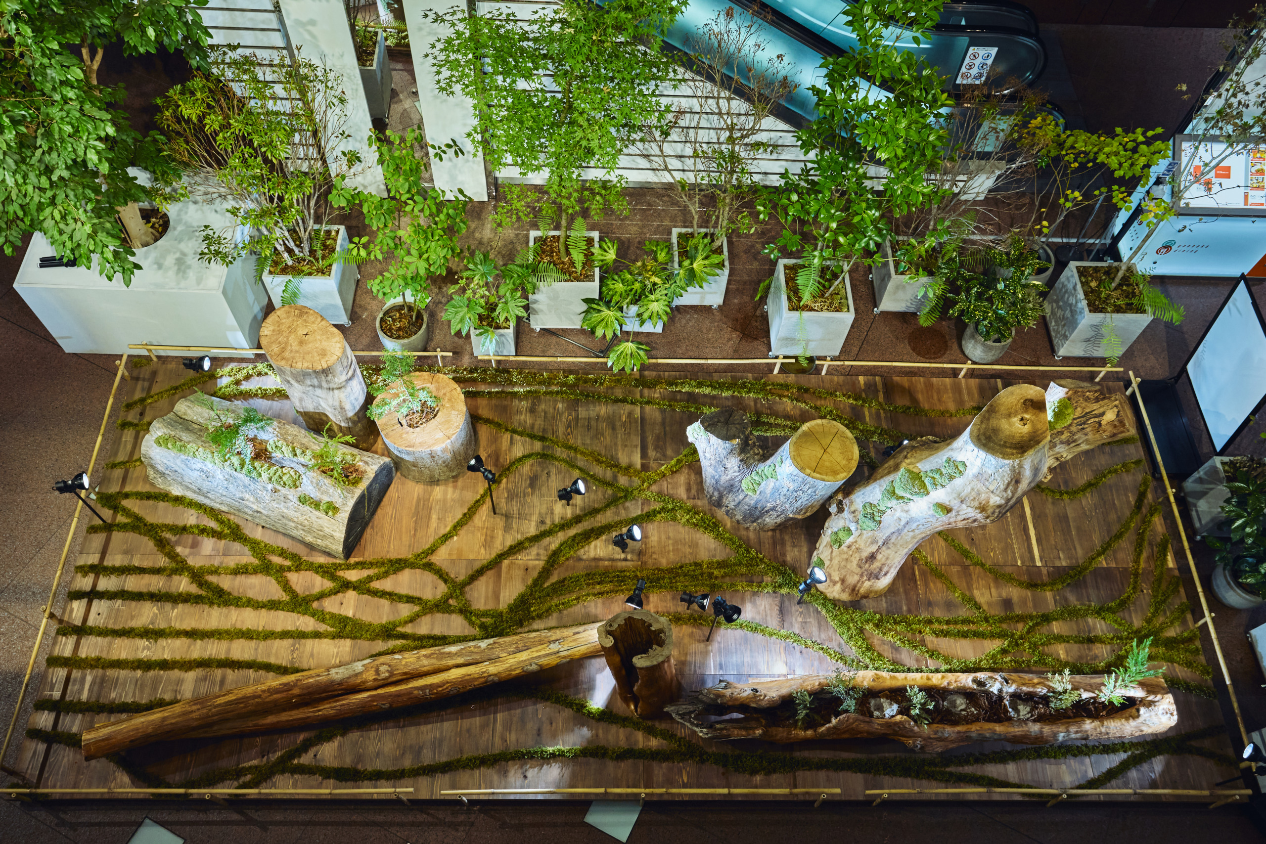 今年10月、東京建物八重洲ビルのB2Fに実装された「木庭 MOKUTEI」。都市にいながら森の再生に関わることを目指すこの革新的なプロジェクトには、東京建物株式会社と株式会社リバネスのほか、建築、苔、そして微生物といった多ジャンルの専門企業が集結している。