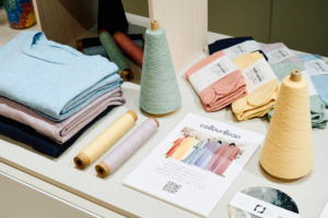 「古着など混紡の廃棄繊維を“色別”に分類して生み出す再生糸『Reprit』を展開しています。次世代のために、企業だけでなく個人も協力して再生繊維を作り、みんなで活用できる社会の実現を目指しています。今回は『着古した服が新しい糸になる”水平リサイクル”の循環を、消費者にもぜひ知っていただきたい』という思いから参加しています」(株式会社colourloop 代表 内丸もと子様)